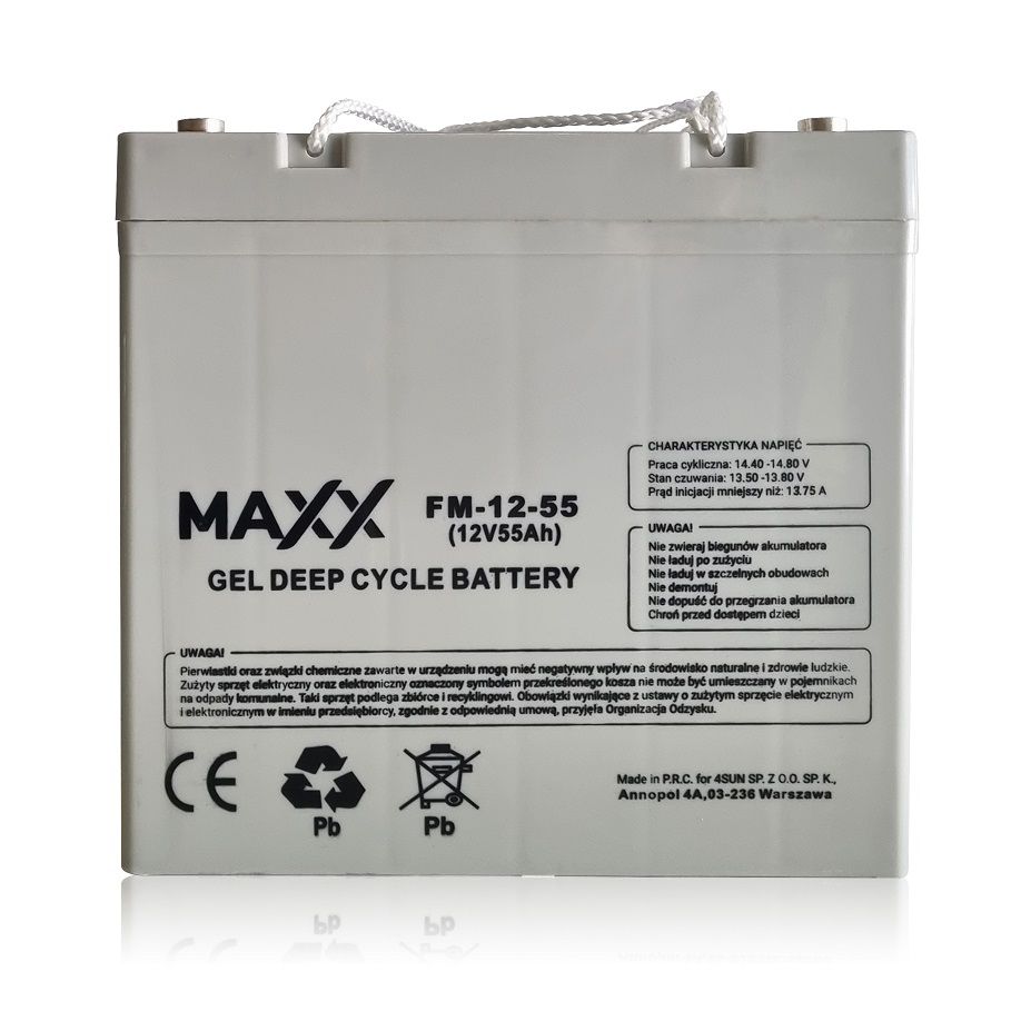 Akumulator żelowy 55Ah to w pełni bezobsługowy akumulator, którego elektrolit ma postać żelu. Zastąpienie cieczy żelem wpływa na brak korozji oraz większą wytrzymałość na ekstremalne temperatury, uderzenia oraz wibracje. Pozwala na osiągnięcie stanu pełnego naładowania nawet po jego głębokim rozładowaniu. Akumulator żelowy 55Ah jest przystosowany do cyklicznego rozładowywania i ładowania, dzięki czemu idealnie sprawdza się w systemach solarnych.