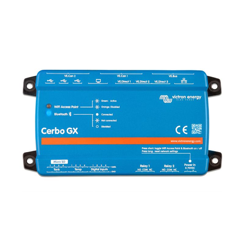 Wersja MK2 (BPP900450110) to zmodernizowany model z ulepszonym procesorem, bardziej precyzyjnym pomiarem oraz rozszerzoną funkcjonalnością. Dzięki komunikacji przez Ethernet, Wi-Fi, Bluetooth, VE.Direct, VE.Can i USB, Cerbo GX staje się sercem inteligentnego zarządzania energią.