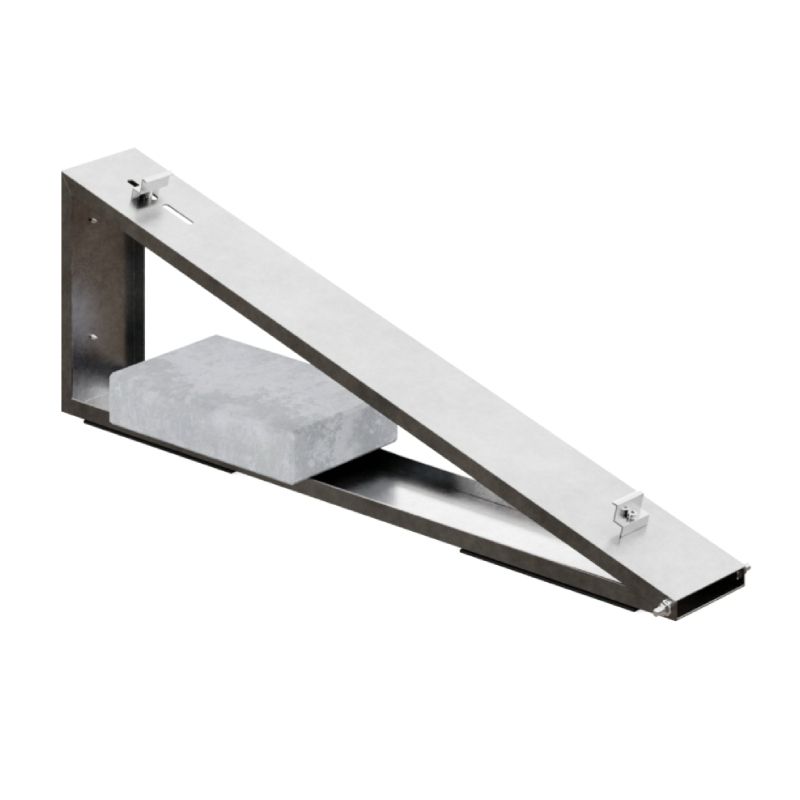 Konstrukcja balastowa trójkątowa z kątem nachylenia 15° wykonana w technologii Magnelis® – stali z powłoką cynkowo-magnezową zapewniającą zwiększoną odporność na korozję i długowieczność.Kluczowe cechy